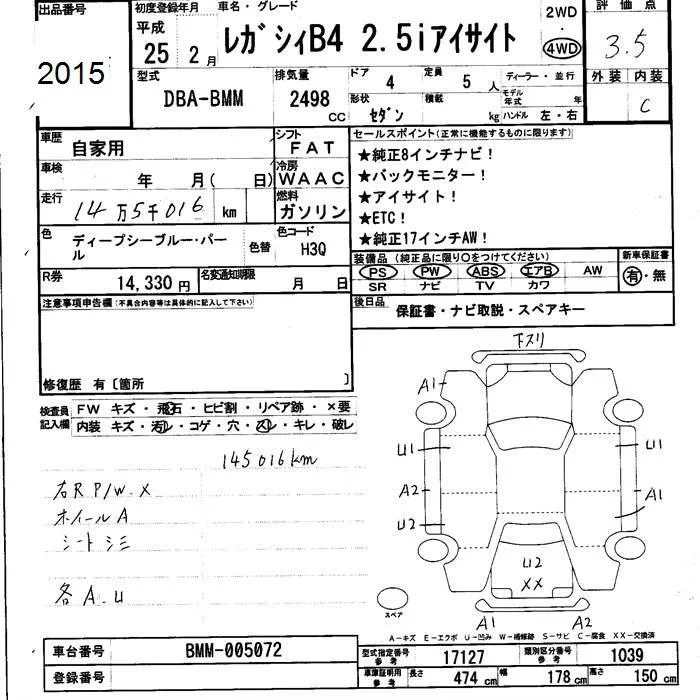 Subaru LEGACY B4 с аукциона Японии JU Fukui лот № 2015