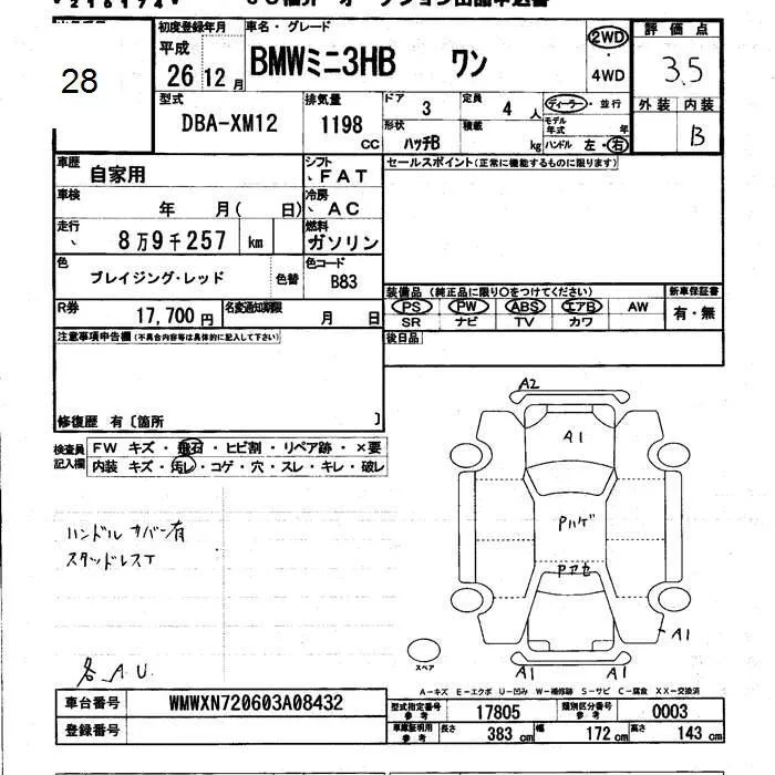 BMW MINI с аукциона Японии JU Fukui лот № 28