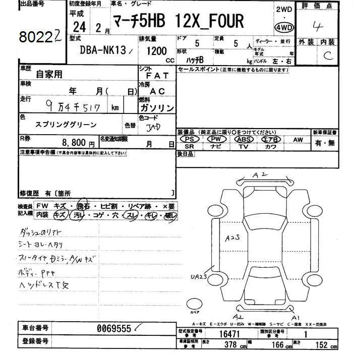 Nissan MARCH с аукциона Японии JU Fukui лот № 8022