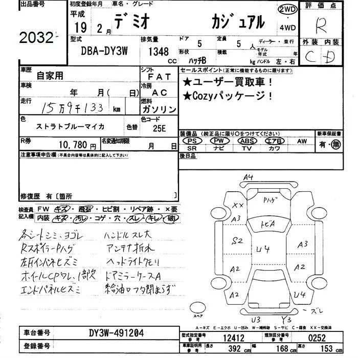 Mazda DEMIO с аукциона Японии JU Fukui лот № 2032
