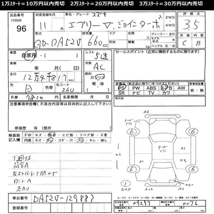 Suzuki EVERY с аукциона Японии JU Mie лот № 96