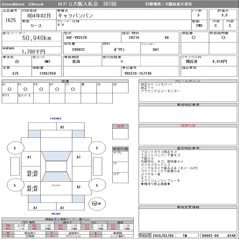 Nissan CARAVAN VAN с аукциона Японии NPS Osaka Nyusatsu лот № 1625
