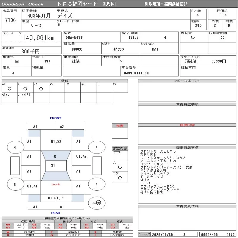 Nissan DAYZ с аукциона Японии NPS Fukuoka Nyusatsu лот № 7106