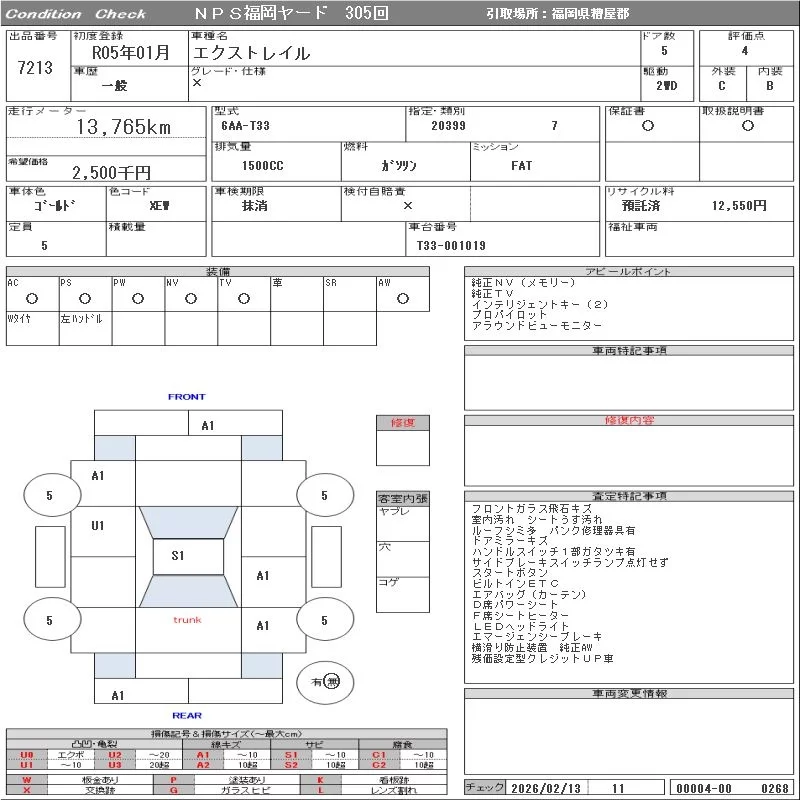 Nissan X-TRAIL с аукциона Японии NPS Fukuoka Nyusatsu лот № 7213