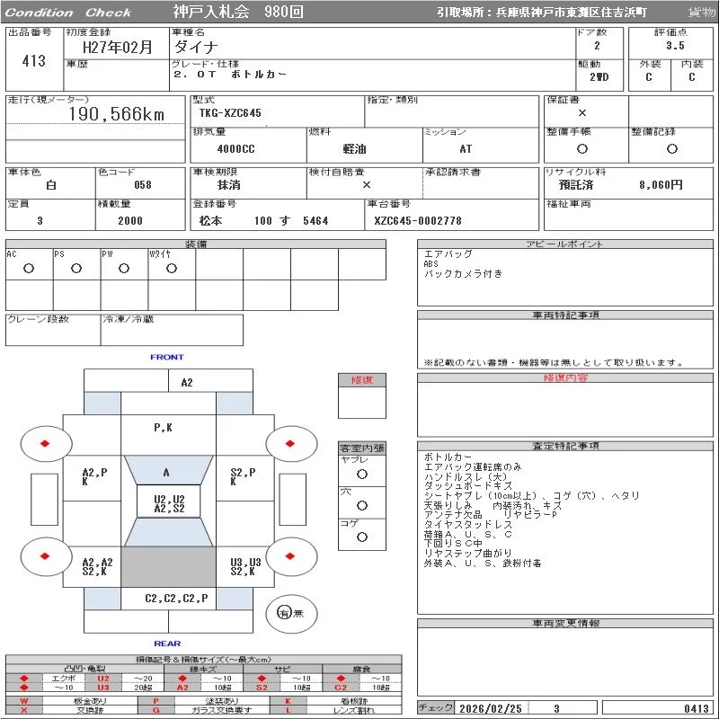 Toyota DYNA с аукциона Японии ORIX Kobe Nyusatsu лот № 413