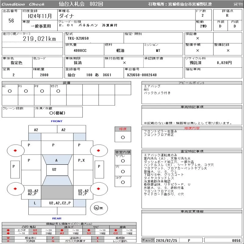 Toyota DYNA с аукциона Японии ORIX Sendai Nyusatsu лот № 56