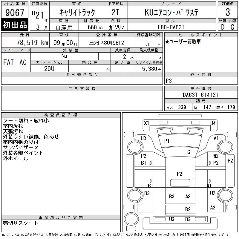 Suzuki CARRY TRUCK с аукциона Японии CAA Chubu лот № 9067