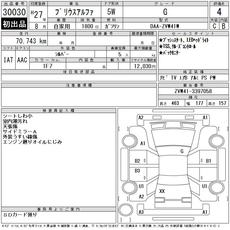 Toyota PRIUS ALPHA с аукциона Японии CAA Chubu лот № 30030