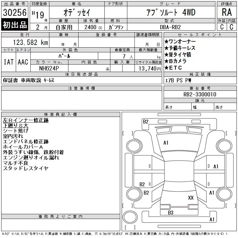 Honda ODYSSEY с аукциона Японии CAA Chubu лот № 30256
