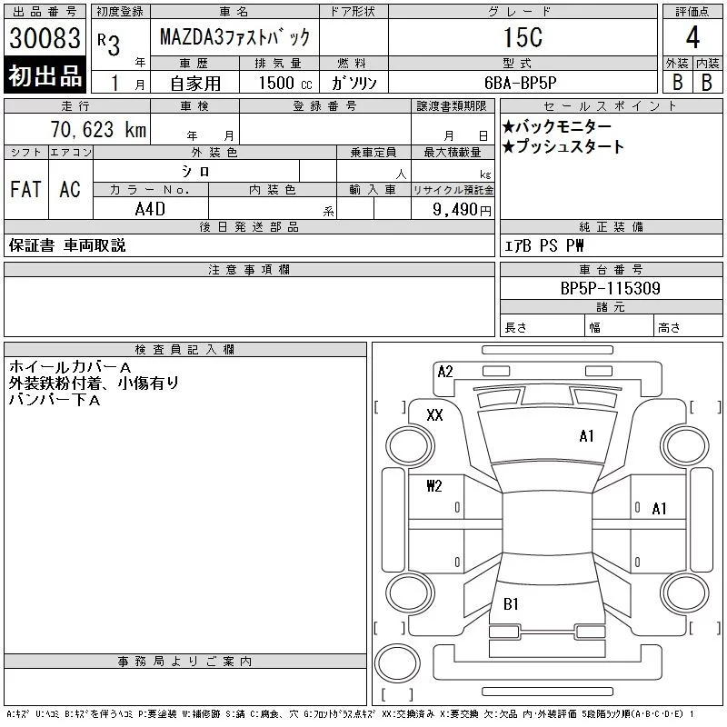 Mazda MAZDA3 с аукциона Японии CAA Chubu лот № 30083