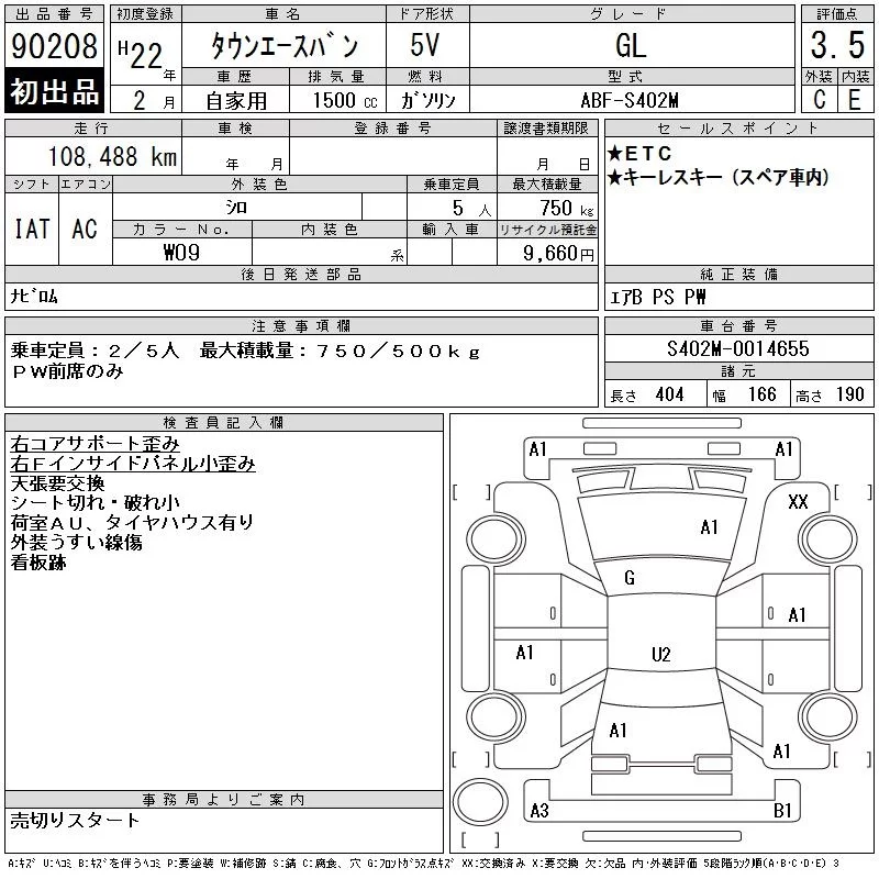 Toyota TOWN ACE VAN с аукциона Японии CAA Chubu лот № 90208