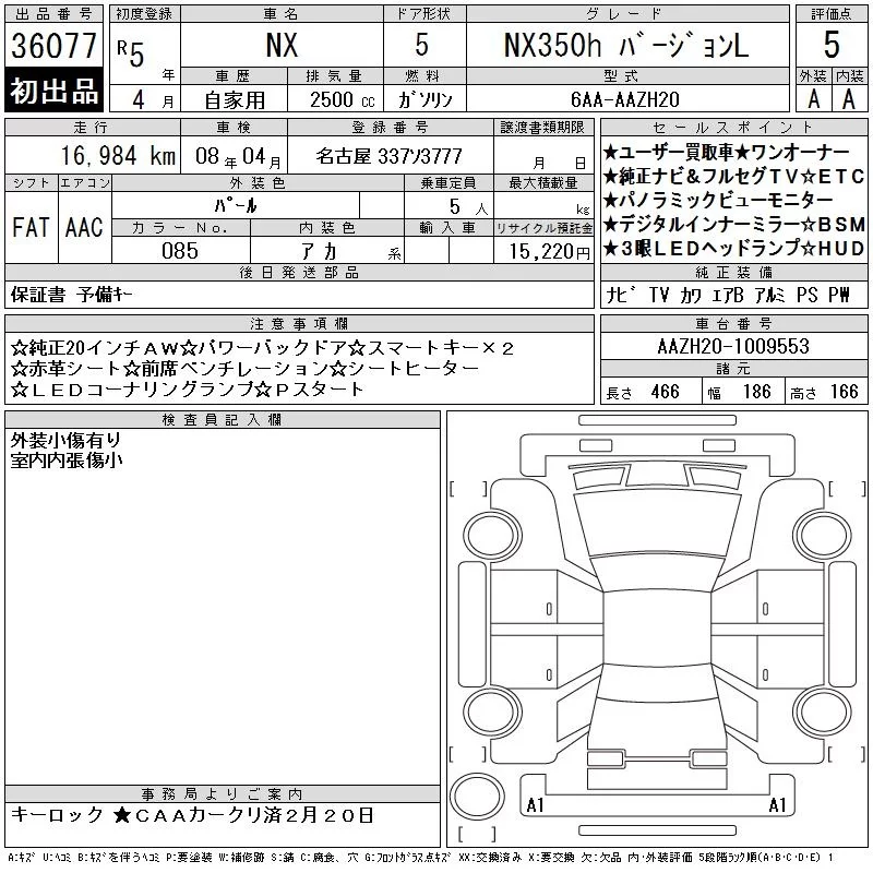 Lexus NX с аукциона Японии CAA Chubu лот № 36077