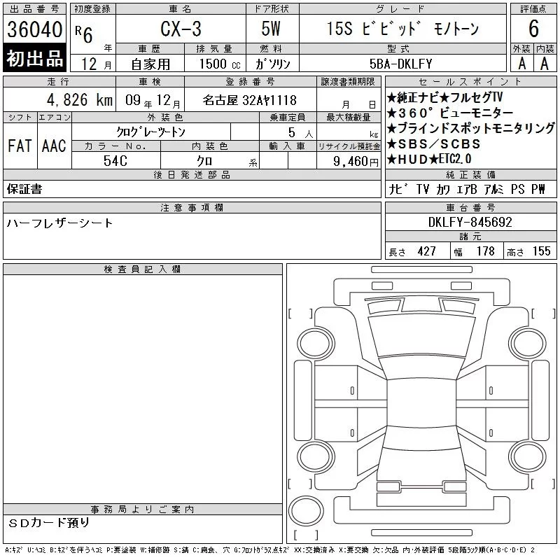 Mazda CX-3 с аукциона Японии CAA Chubu лот № 36040