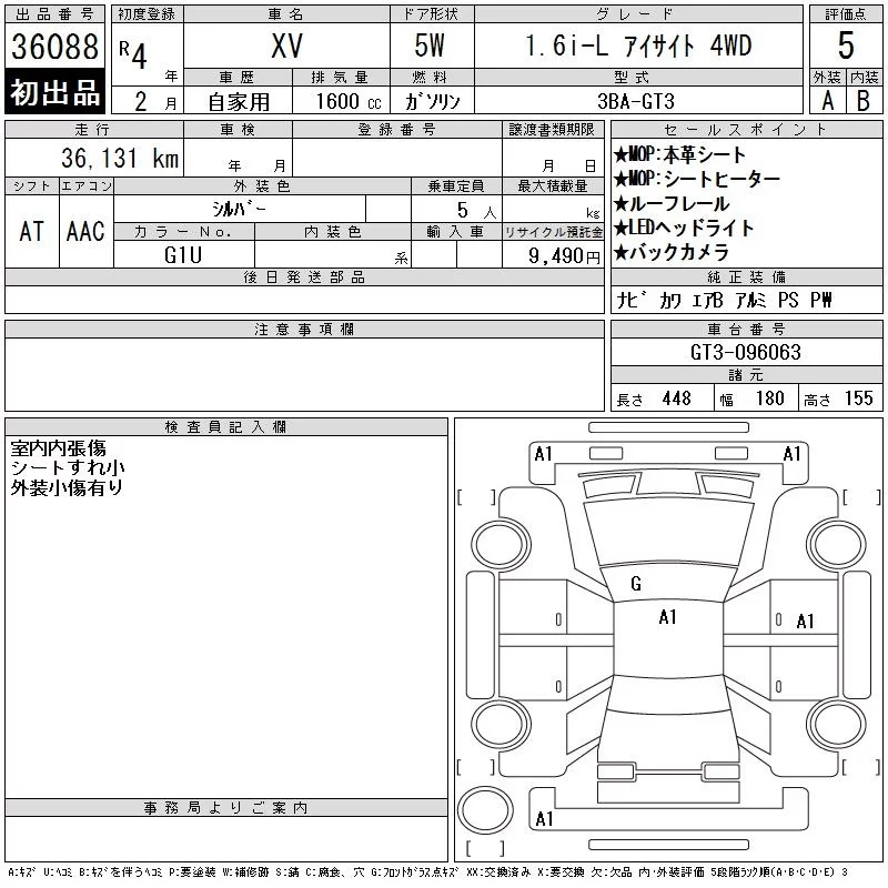Subaru XV с аукциона Японии CAA Chubu лот № 36088