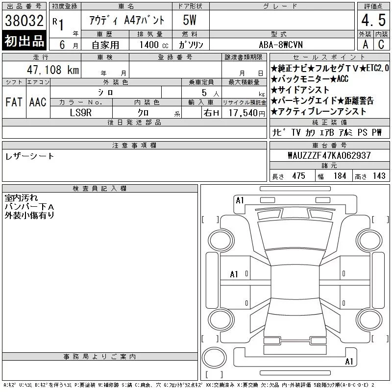 Audi A4 с аукциона Японии CAA Chubu лот № 38032