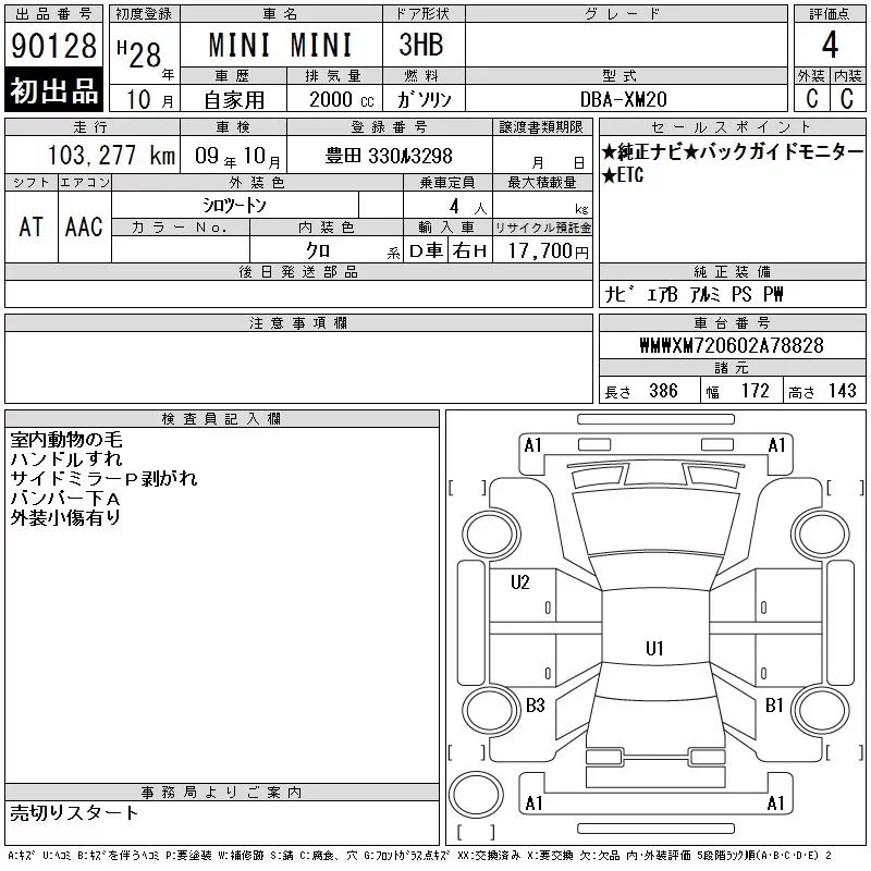 BMW MINI с аукциона Японии CAA Chubu лот № 90128
