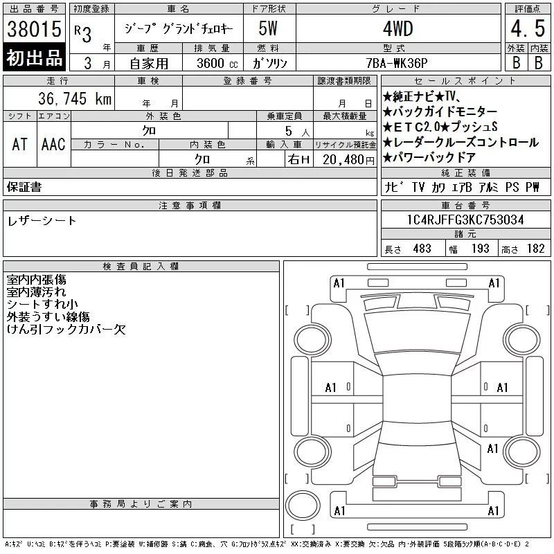 Chrysler JEEP GRAND CHEROKEE с аукциона Японии CAA Chubu лот № 38015