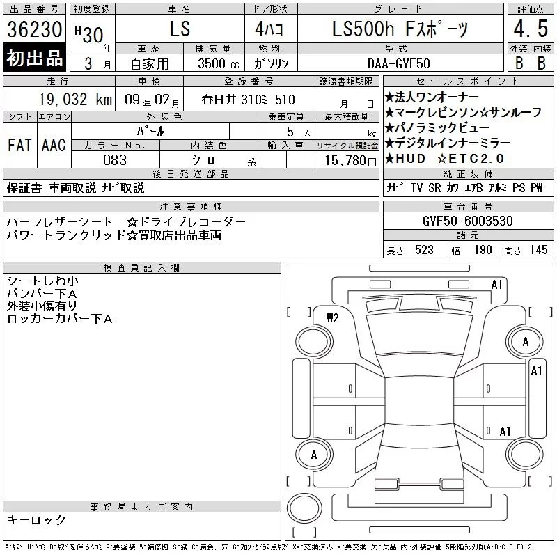 Lexus LS с аукциона Японии CAA Chubu лот № 36230