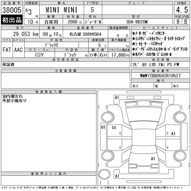 BMW MINI с аукциона Японии CAA Chubu лот № 38005