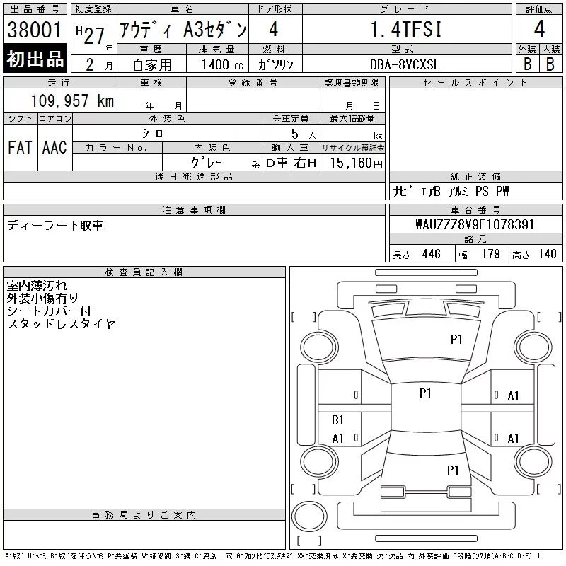 Audi A3 с аукциона Японии CAA Chubu лот № 38001