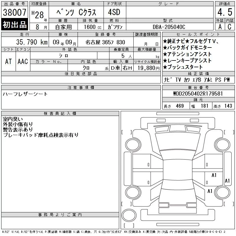 Mercedes-Benz C CLASS с аукциона Японии CAA Chubu лот № 38007