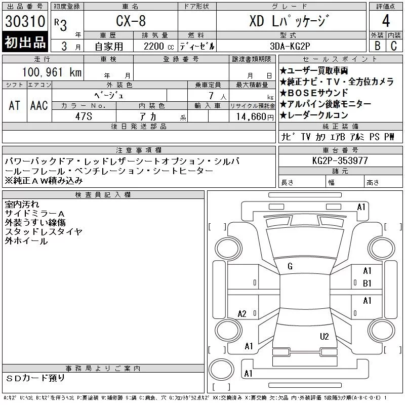 Mazda CX-8 с аукциона Японии CAA Chubu лот № 30310