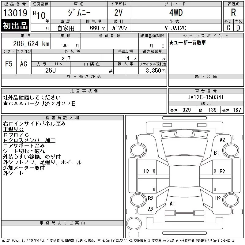 Suzuki JIMNY с аукциона Японии CAA Chubu лот № 13019