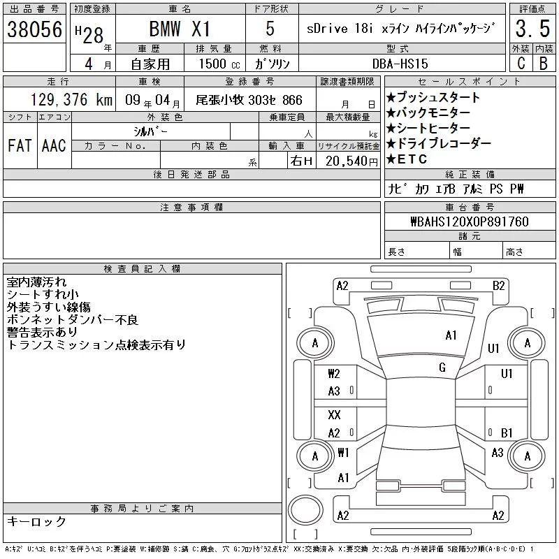BMW X1 с аукциона Японии CAA Chubu лот № 38056
