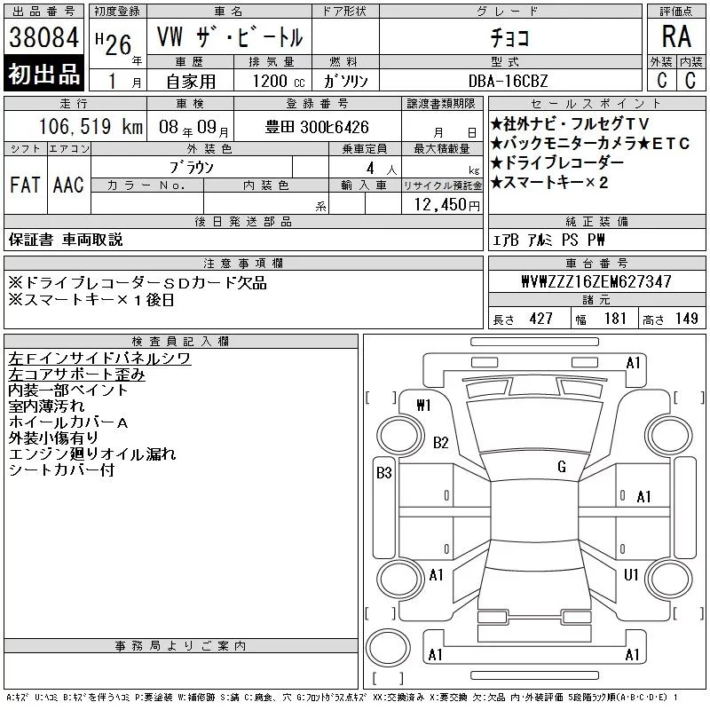 Volkswagen THE BEETLE с аукциона Японии CAA Chubu лот № 38084