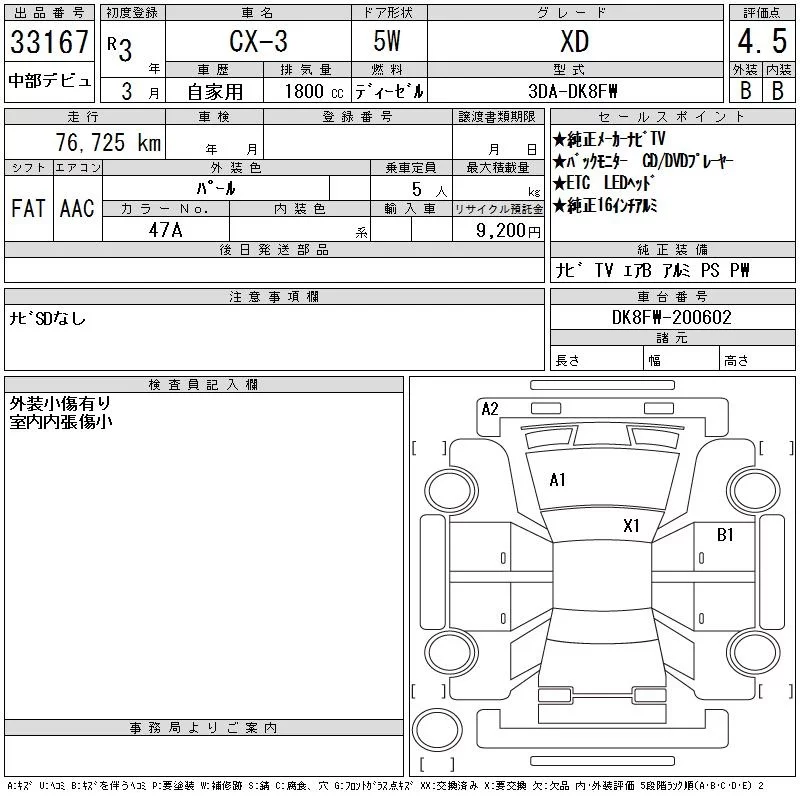 Mazda CX-3 с аукциона Японии CAA Chubu лот № 33167