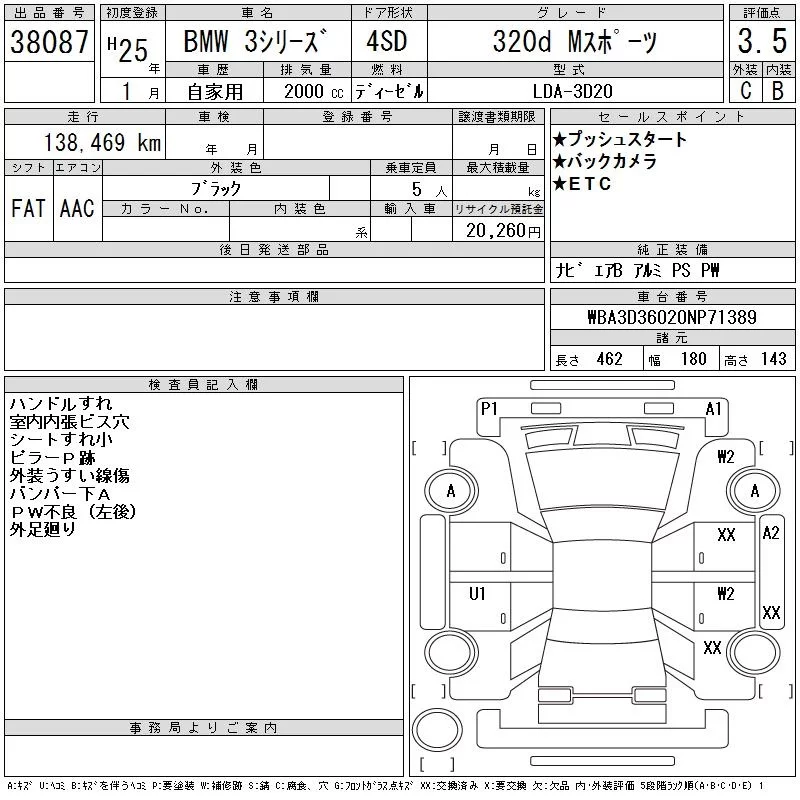 BMW 3-Series с аукциона Японии CAA Chubu лот № 38087