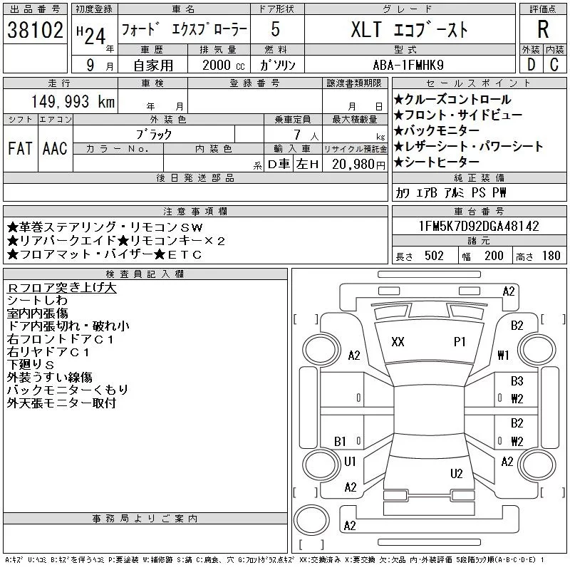 Ford EXPLORER с аукциона Японии CAA Chubu лот № 38102
