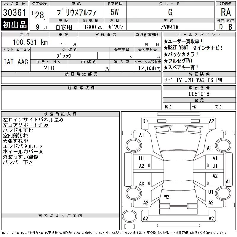 Toyota PRIUS ALPHA с аукциона Японии CAA Chubu лот № 30361