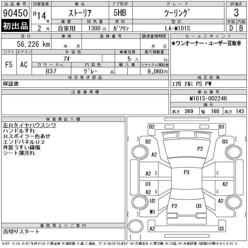 Daihatsu STORIA с аукциона Японии CAA Chubu лот № 90450