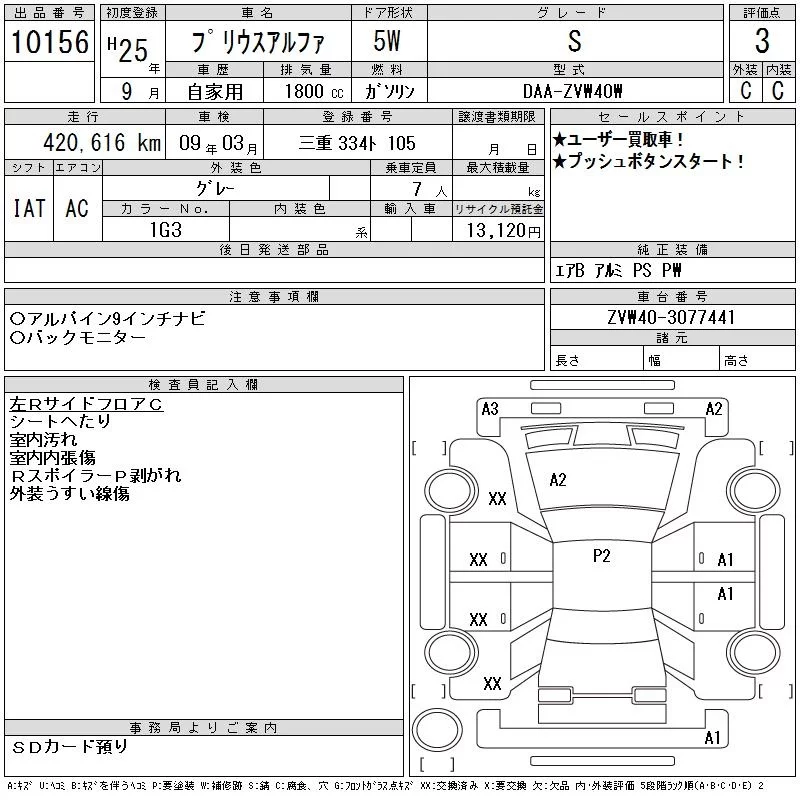 Toyota PRIUS ALPHA с аукциона Японии CAA Chubu лот № 10156