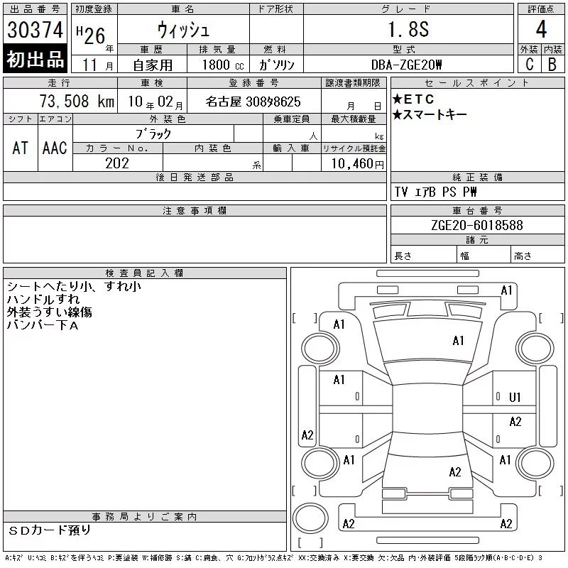 Toyota WISH с аукциона Японии CAA Chubu лот № 30374