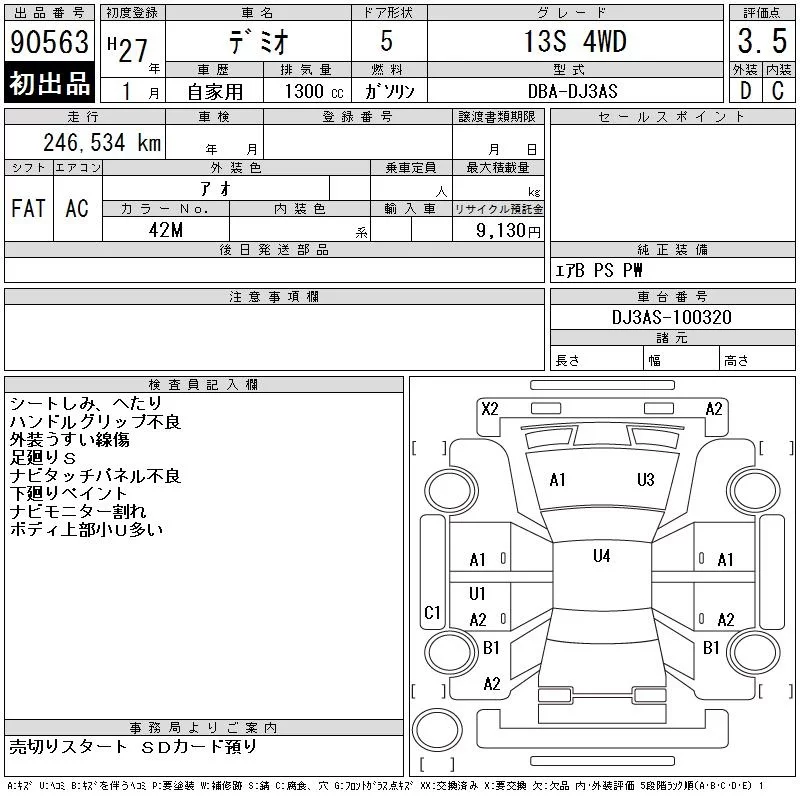 Mazda DEMIO с аукциона Японии CAA Chubu лот № 90563