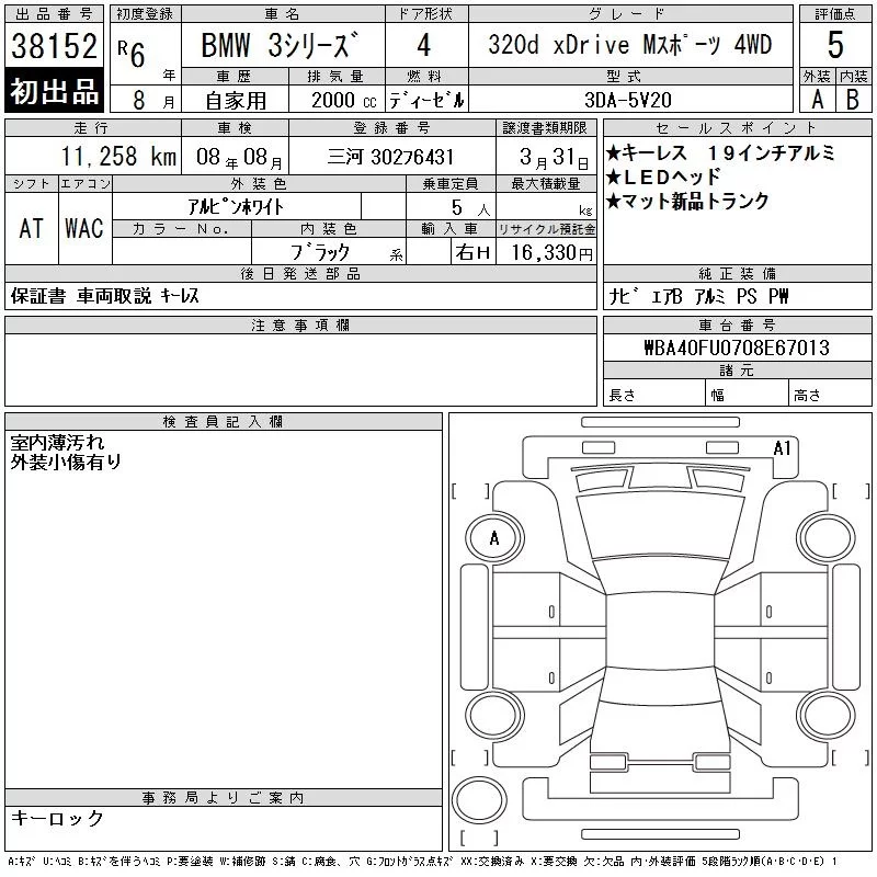 BMW 3-Series с аукциона Японии CAA Chubu лот № 38152