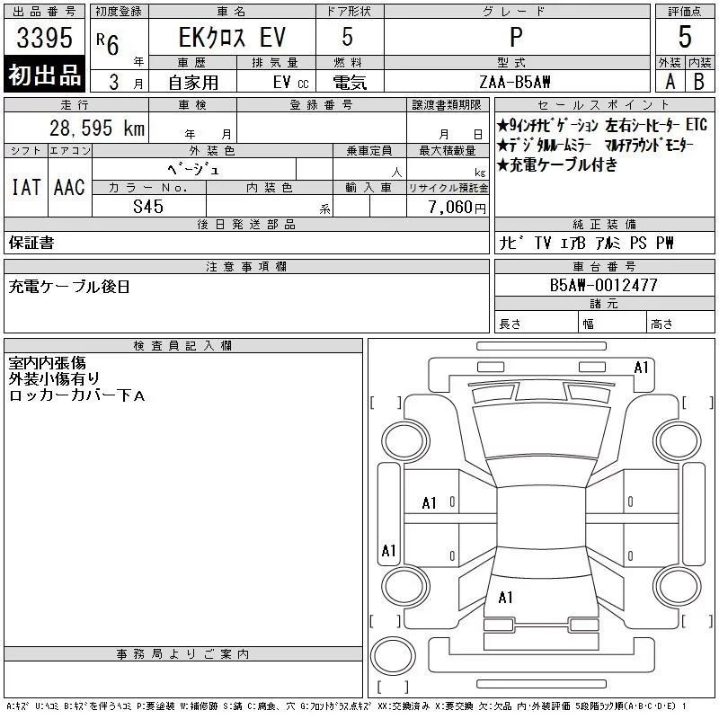 Mitsubishi EK X EV с аукциона Японии CAA Chubu лот № 3395