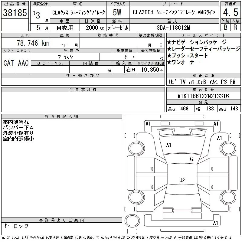 Mercedes-Benz CLA CLASS с аукциона Японии CAA Chubu лот № 38185