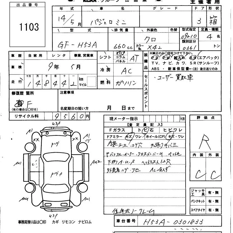 Mitsubishi PAJERO MINI с аукциона Японии KCAA Minami Kyushu лот № 1103