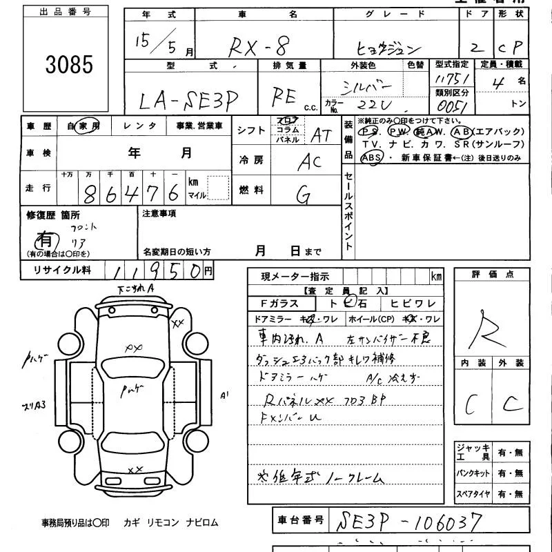 Mazda RX-8 с аукциона Японии KCAA Minami Kyushu лот № 3085