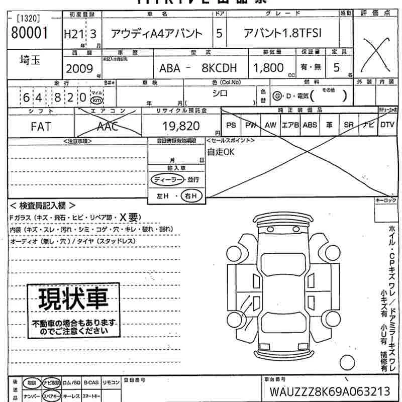Audi A4 с аукциона Японии MIRIVE Saitama лот № 80001