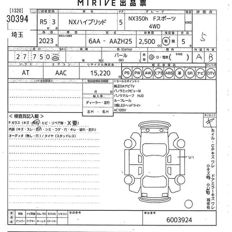 Lexus NX с аукциона Японии MIRIVE Saitama лот № 30394