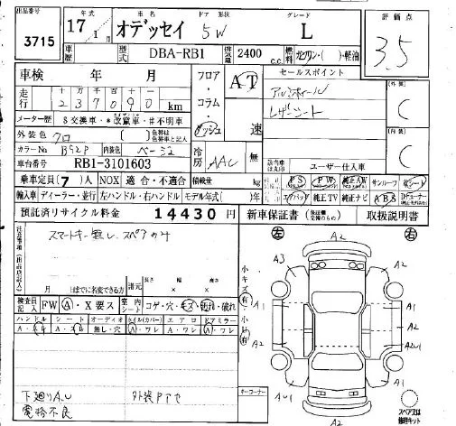 Honda ODYSSEY с аукциона Японии IAA Osaka лот № 3715