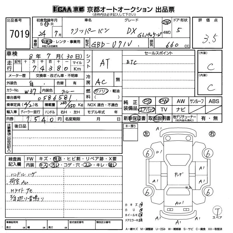 Nissan CLIPPER VAN с аукциона Японии KCAA Kyoto лот № 7019