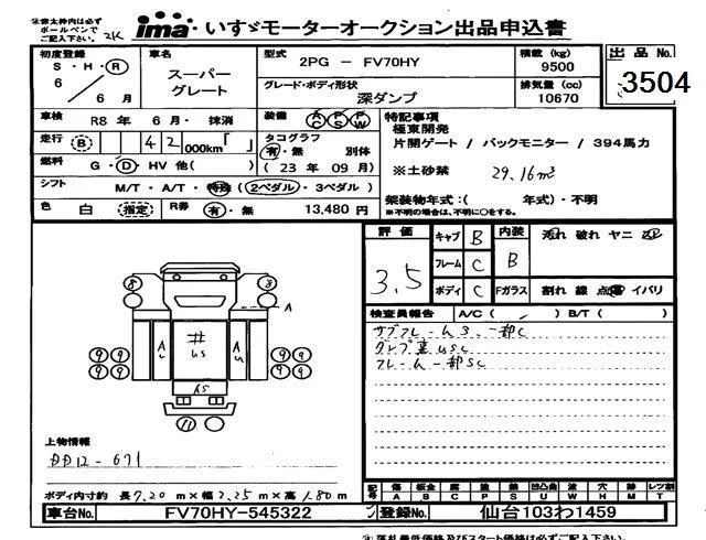 Mitsubishi FUSO TRUCK с аукциона Японии Isuzu Tokyo лот № 3504
