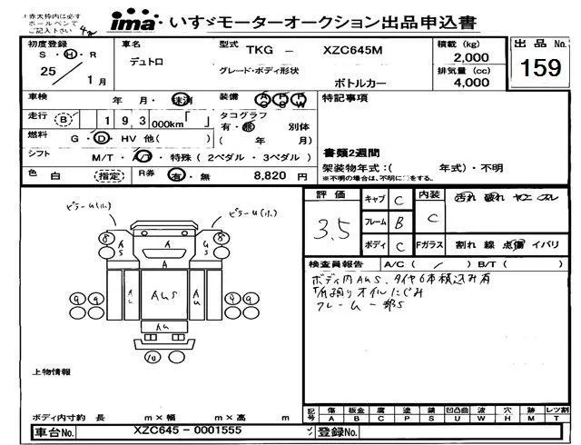 Hino DUTRO с аукциона Японии Isuzu Tokyo лот № 159