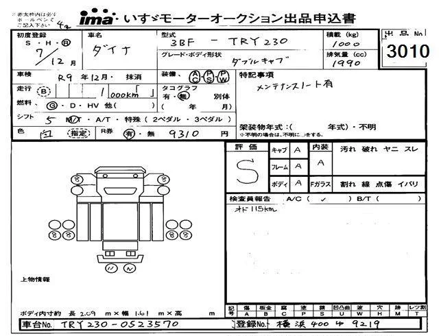 Toyota DYNA с аукциона Японии Isuzu Tokyo лот № 3010