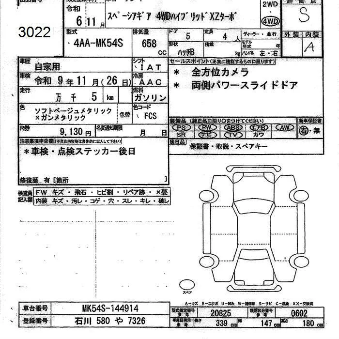 Suzuki SPACIA GEAR с аукциона Японии JU Ishikawa лот № 3022